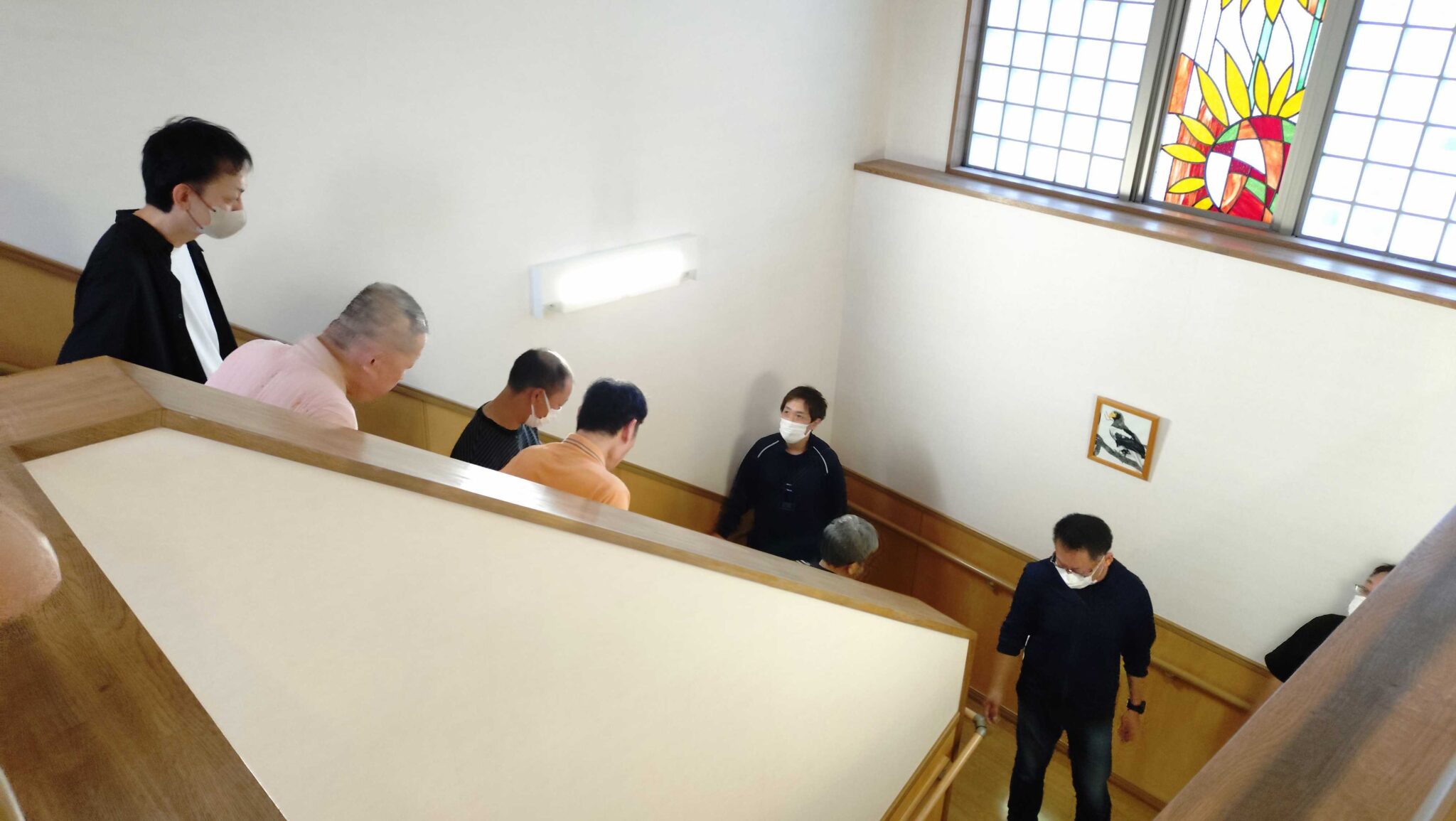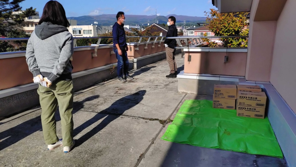 夕方には、各事業所ごとに避難訓練を行いました。避難先に移動するケース、建物の2階へ垂直避難するケースなど、所在する地域や建物環境に応じて訓練を行いました。その後、二次避難対応の有無の確認、事業継続対応の協議などのシュミレーションを行って終了となりました。