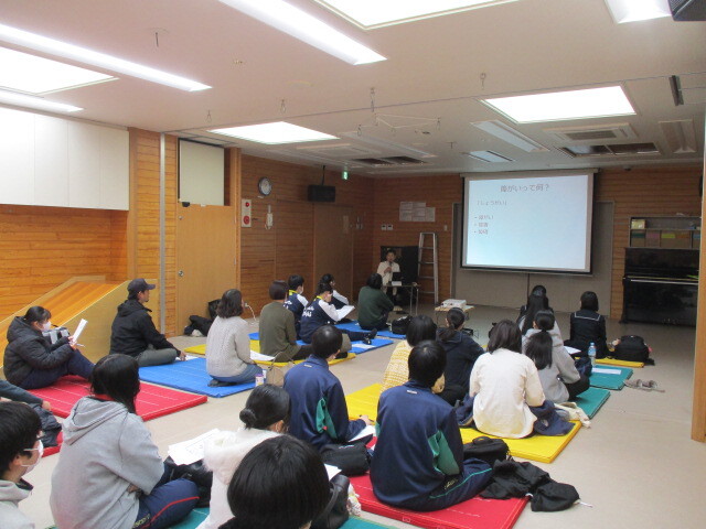 講師は、金沢京子副園長が務めました。スクリーンを使用して「知的障がい・発達障がいについて」をテーマに講義をしたあと、つくしんぼ学級の施設内を見学案内しました。見学では、利用する子どもたちの生活の様子を説明しました。