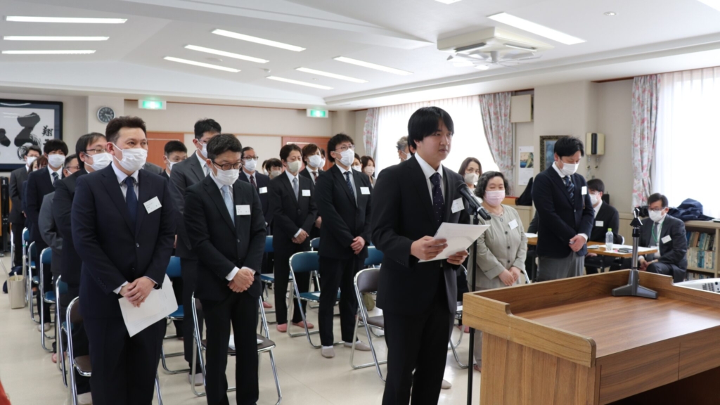 本日より令和8年度のスタートを切りました。入職した新しい仲間を迎えて、理念の実現に向けた取り組みを法人全体で進めていきたいと思います。あらためまして、辞令を受けた皆さま、本日は誠におめでとうございます。