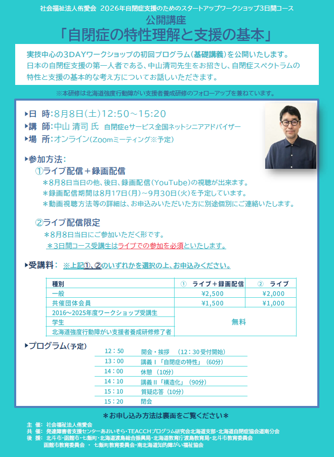 | 対象者 | 福祉・教育・労働・行政など支援機関の方、一般の方 |