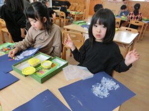 今日は雪だるま製作の続きをしました☆彡