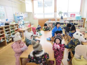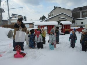どんなところが危ないのかなど雪遊びのお約束をしっかり確認しました!!