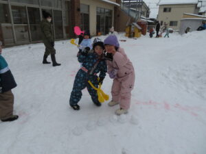 雪を飛ばして遊んでいるお友だちもいました❄️