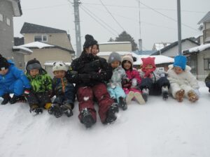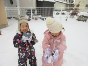 朝の会の後は、スノーウェアに着替えて雪遊び!!!