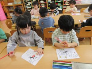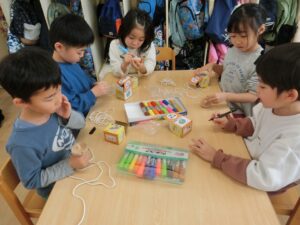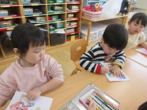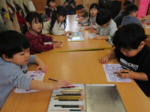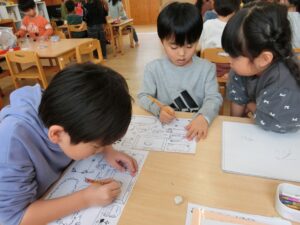 文字がまだ難しい子は、お友だちに見本を書いてもらったり