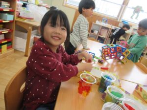 画用紙よりも柔らかいカラーセロハンに苦戦しているようでしたが、
