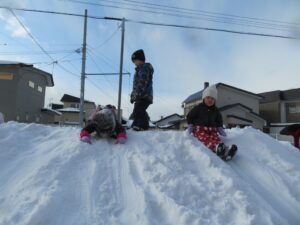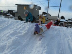 山の上から滑ったり大きな雪玉を見つけてはしゃいでいました(*^_^*)