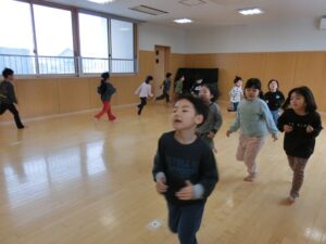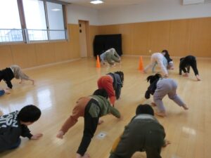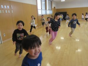 ホールでは、変身マラソンごっこやシャトルランをしてたくさん走っています!