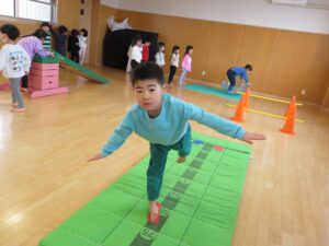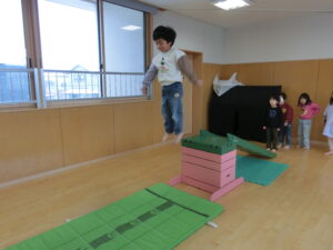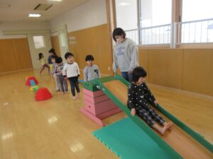 平均台や滑り台、前転、ボール投げなど様々なコーナーを楽しみました。