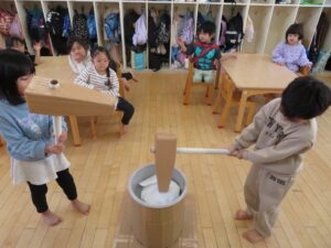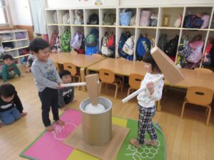 お部屋に戻ってからは手作りの臼と杵でもちつきごっこをしました✨