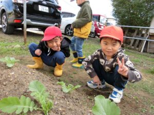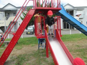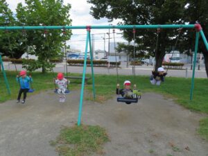 滑り台やブランコで遊んだり、公園の木の下にたくさんどんぐりが落ちていて大喜びでどんぐり拾いをしました。