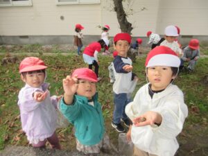 大きなどんぐりを見つけると「大きいよ!」と保育者や友だちに見せて歩いているお友だちも( ◠‿◠ )