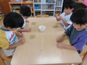 グループ全体で分けたお米を人数分に分け、1人ずつの量を決めて取り組むグループもありました😳✨