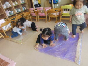 中に入っている玩具の動きを指で動かして楽しむ姿が見られました🤗