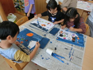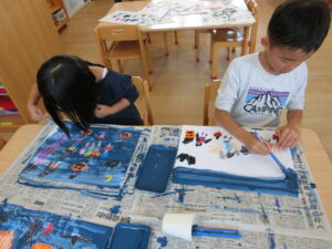 先生の話をしっかり聞いて絵の具を塗ることが出来ていますよ(^▽^)/