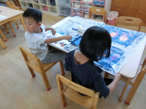今日は園庭チームと絵の具チームで交代交代で活動しました🌟