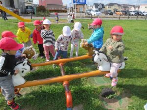 ブランコなどの遊具では順番を守って、20秒ずつ交代で仲良く遊んでいました(*´▽`*)