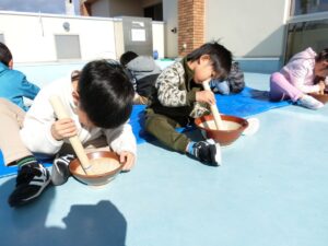 米が砕けるほど一生懸命ゴリゴリしているお友だちも…(笑)
