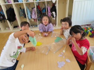 スライムの冷たさや感触に夢中になって遊び続けていましたよ🌟