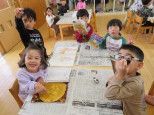 イチョウの葉っぱの形を上手に真似して描くことが出来ました😊