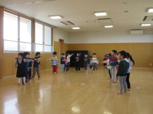 その後はホールで、体操代わりにじゃんぐるグルグルを踊って