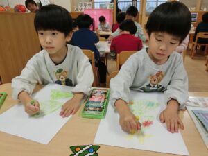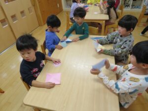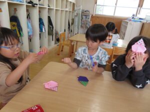 折り紙がはがれそうな部分を仕上げしてくれるお友だちもいます😊