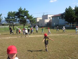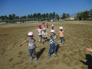 グラウンドへ着くと、たくさん走ったりだるまさんがころんだをしたり