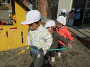 すみれ組さんと一緒に園庭で遊びました。