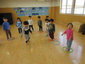 寒暖差で風邪気味のお友だちが増えていたので今日はお部屋とホールで遊んで過ごしています。