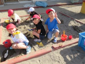 鬼ごっこをしたり「今日お月見だからお団子作ったよ🎵」と砂のお団子を見せてくれました( ◠‿◠ )
