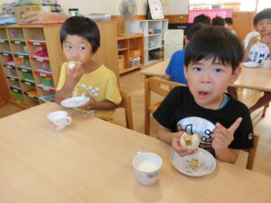 みんなで歌を歌ったり、お月見ってどんな日なのかを司会の保育者が伝えると