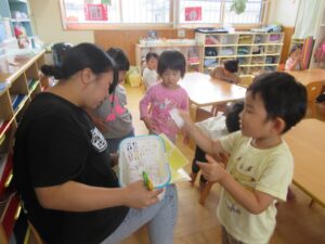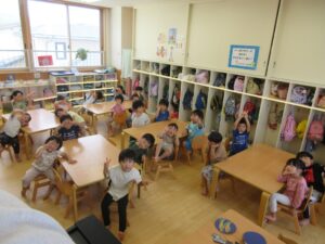 みんなでお歌を歌ったり、各クラスの製作を見たり、