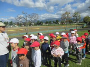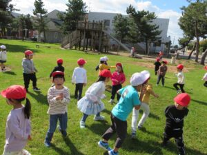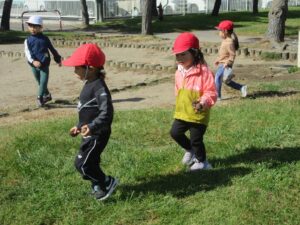 今日はグラウンドの中ではなく、原っぱで遊び鬼ごっこでおもいっきり走ったり、