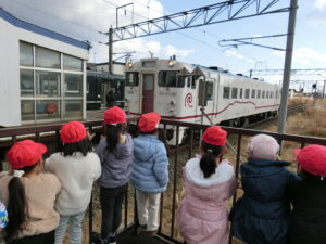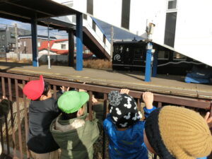帰る途中、いさりび鉄道が通って「でんしゃだ!!」と大喜びでした🎵