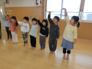園長先生に見てもらいながら一生懸命台詞や立ち位置も練習していたたんぽぽ組さんでした😊