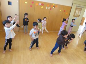 みんなで元気にラジオ体操をしたり、今日はかっこいい立ち方のレクチャーをしてもらいました。