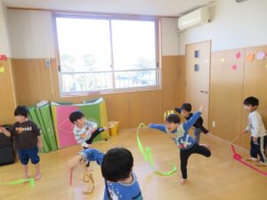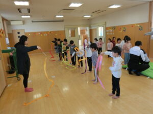 リボンチームは上や下で引っかからないようにリボンを回したり、投げて取る練習をしたりと楽しみながら頑張っていましたよ😊