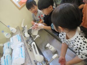 うがいのやり方を教えると上手に上を向いてガラガラ~ペッと挑戦していました!