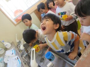 初めてのうがいだったので中には歯磨きを始める子も…(笑)
