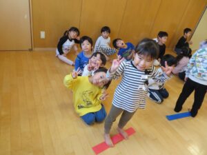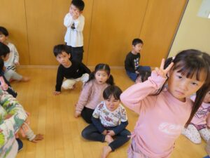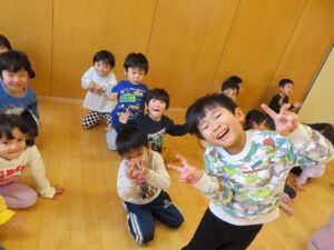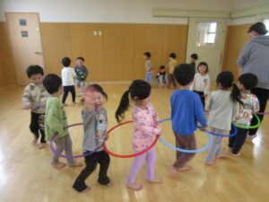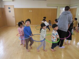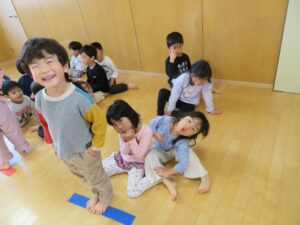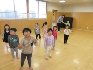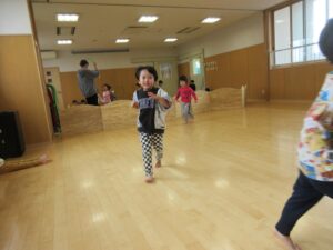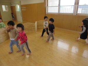 今日は、ホールでまず歌を歌ってから体を動かして遊びました‼