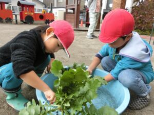 大根抜きでは全員一回ずつ大きな大根から小さな大根など