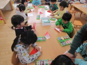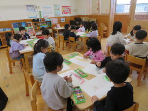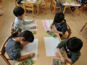 その後は、お楽しみ会の絵を描きましたよ~🖍