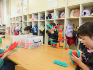 今日はお部屋でクリスマス製作をしながらまったり好きな遊びをして過ごしています。
