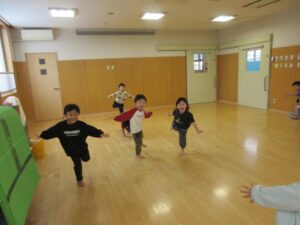 今日は、ばら組のお友だちも一緒にホールでリズム運動をしました🎵