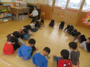 1周して座ることが出来ると周りのお友だちも