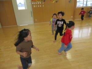 今日はみんなでハンカチ落としゲームに挑戦しました!