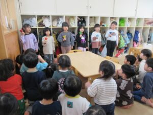ホールの帰り、廊下から綺麗な音が聞こえ、たんぽぽ組へお邪魔しました!