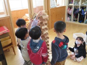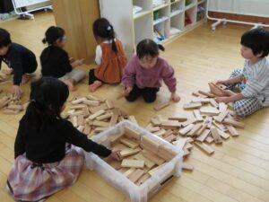 ジェンガを作ったり、お風呂やお家などをみんなで作り盛り上がりました😊