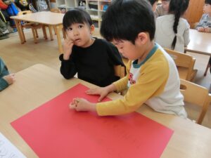 その後は、2列に椅子を並べて卒園式の練習をしましたよ!
