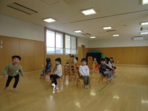 ホールまで椅子を持って行き、椅子取りゲームをして遊びました!!